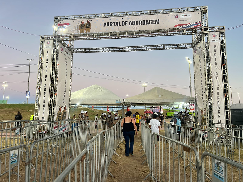 Objetos proibidos – Nos portais de abordagem para acesso ao evento, profissionais da Polícia Militar equipados com terminais de comunicação móvel com tecnologia LTE (Long Term Evolution) monitoram o acesso para impedir a entrada de objetos ilícitos.